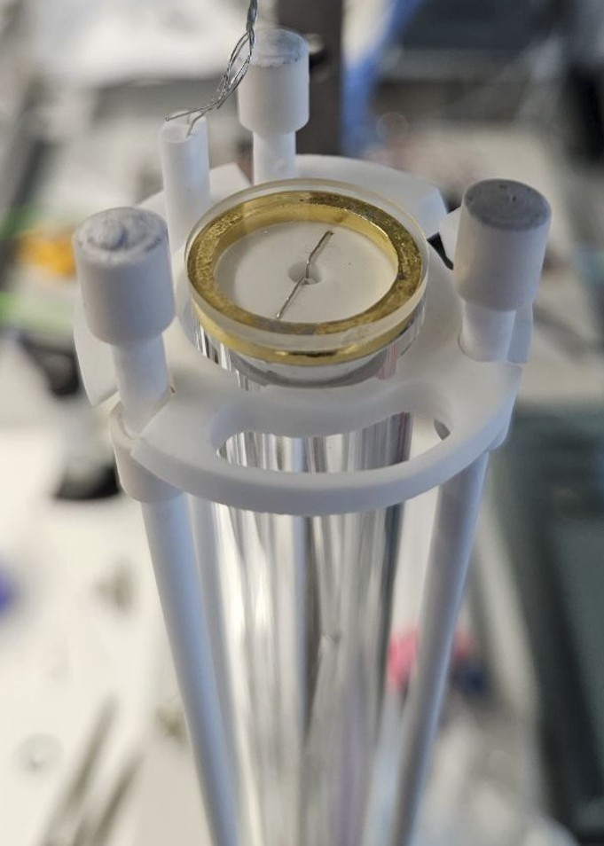 The Plug&Probe Cell is designed to provide a tool to perform easy two gass electrical measurements on pellets or thin film samples at elevated temperatures and changing gas environments for electrolysis and fuel cell measurments.
